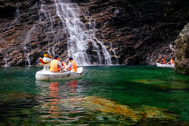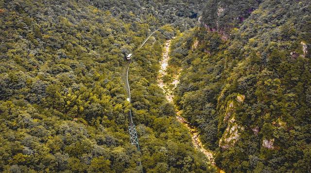为了节省体力和时间,我们选择了乘坐三叠泉缆车上山,不同于大缆车,缆车穿行于峡谷之间,缓缓而行,从海拔991.7米的上房站直达海拔839米的下房站,全程只要7分钟左右,就能省去1小时的时间,主要是免去了攀爬940多节台阶的辛苦。
