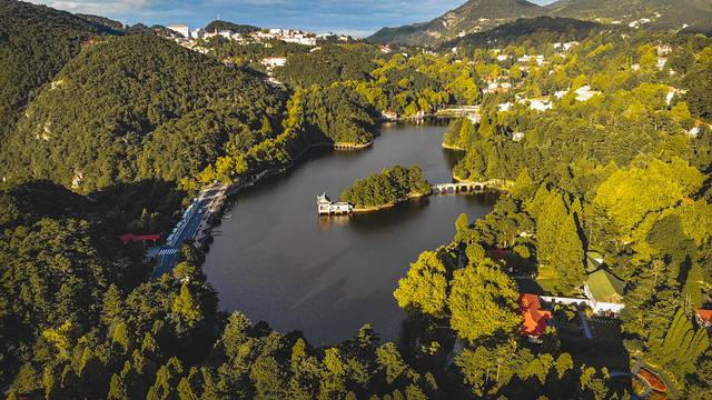 参观了庐山博物馆,走出来是碧波荡漾的芦林湖,无论是芦林湖还是如琴湖,桥坝一体,拦水成湖,所蓄之水是目前庐山牯岭镇1.6万居民的主要水源,而对于大多数的游人来说,这旖旎的自然风光就已经足够吸引着来自世界各地的人们前来打卡拍照。