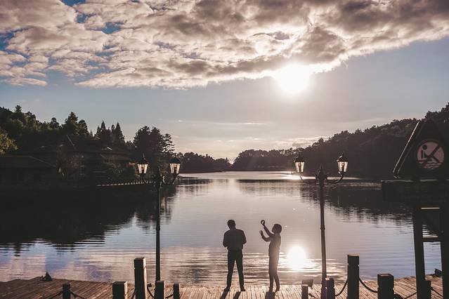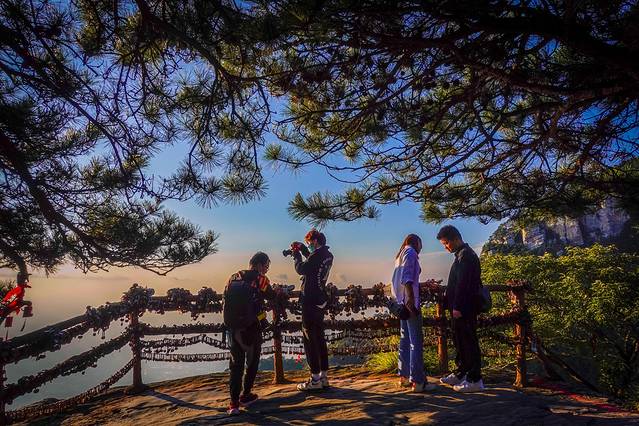 如琴湖交通方便,从牯岭街一路下坡10分钟就来到如琴湖边,而且进入如琴湖的木栈道这里是观看夕阳的绝佳位置。