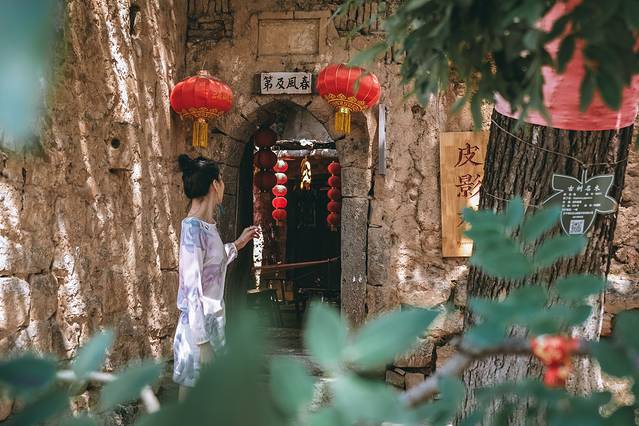 古村落内可以体验非遗技术做花馍、观皮影戏、动手扎染