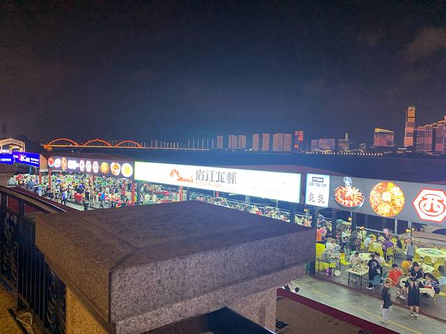渔人码头全是夜宵摊。远处的楼是统一的荧幕,连拉索桥也是。很难想象大城市会有一条大江