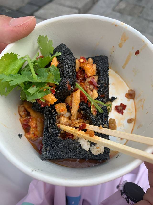 这里的臭豆腐真的更好吃!很薄的脆皮,里面很嫩,入口即化,小哥把每个撬开倒进去汁。