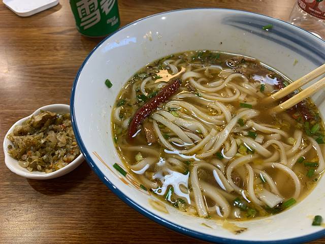 周记粉店。粉的量好少,很油,也比较香。确实是我吃过数一数二的粉