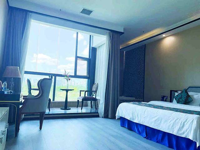 酒店共有异型房间20余个,推窗可见绿景,空气清新怡人,酒店房间布置和陈列也多与荷花有关。大厅的荷韵设计也别致出色,给人一种干净古典的气质美。