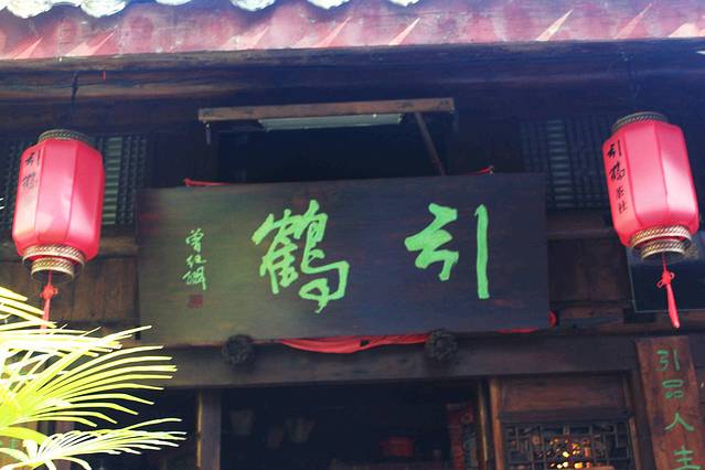 斑驳的门楣上,挂着“引鹤”二字,简单的招牌却有着深厚的含义,这是茶社创始人从万历宰相张居正的诗句“与闲云野鹤倘佯于烟霞水石间”中摘引出来的。