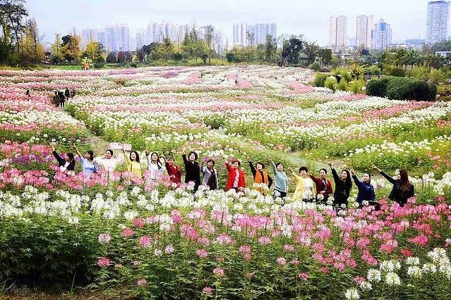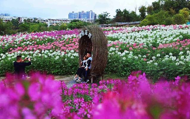 尤其是醉蝶花,盛开时似蝴蝶飞舞,颇为有趣醉蝶花的花瓣轻盈飘逸。五彩斑斓的颜色混合在一起,汇成了一幅浓墨重彩的油画,煞是好看。