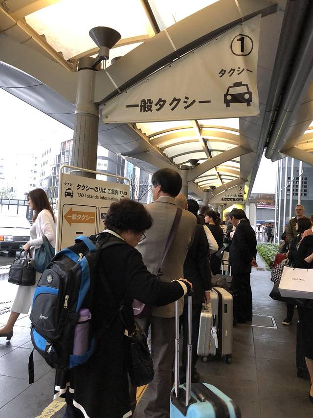 排队搭的士,注意不要排人多的大队伍,那是小车,像我们有行李箱的人,更前面一点的地方排专门给有大件行李的大车。我们排了半天,没坐上车,又去那边重新等车,下大雨,所以还蛮辛苦的。