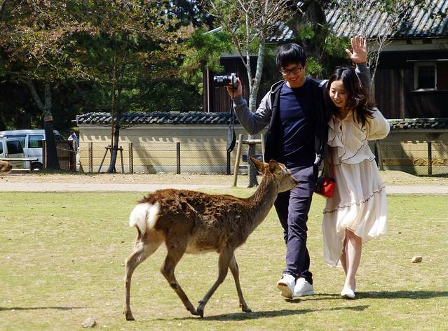 奈良公园位于奈良市街的东边,若草山、东大寺、春日大社、国立博物馆等名胜古迹大多在这里,是日本现代公园的先驱之一。园内有许多嬉戏的鹿群,这些鹿被指定为国家的自然保护动物。春季嫩枝发芽和秋季的满园枫叶,都让人心旷神怡,而在淡季时 则可以悠闲自在地散步。一年四季无论何时,这里都有吸引人的景观。