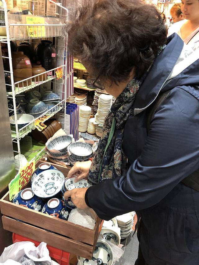 找到了阿妈喜欢的陶瓷市场,看她开心得。