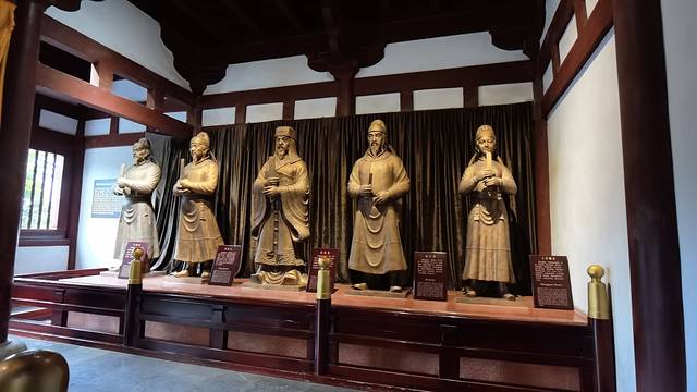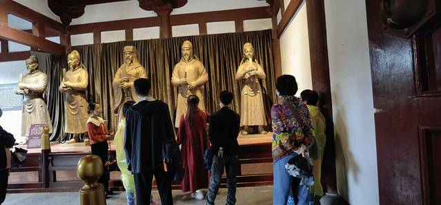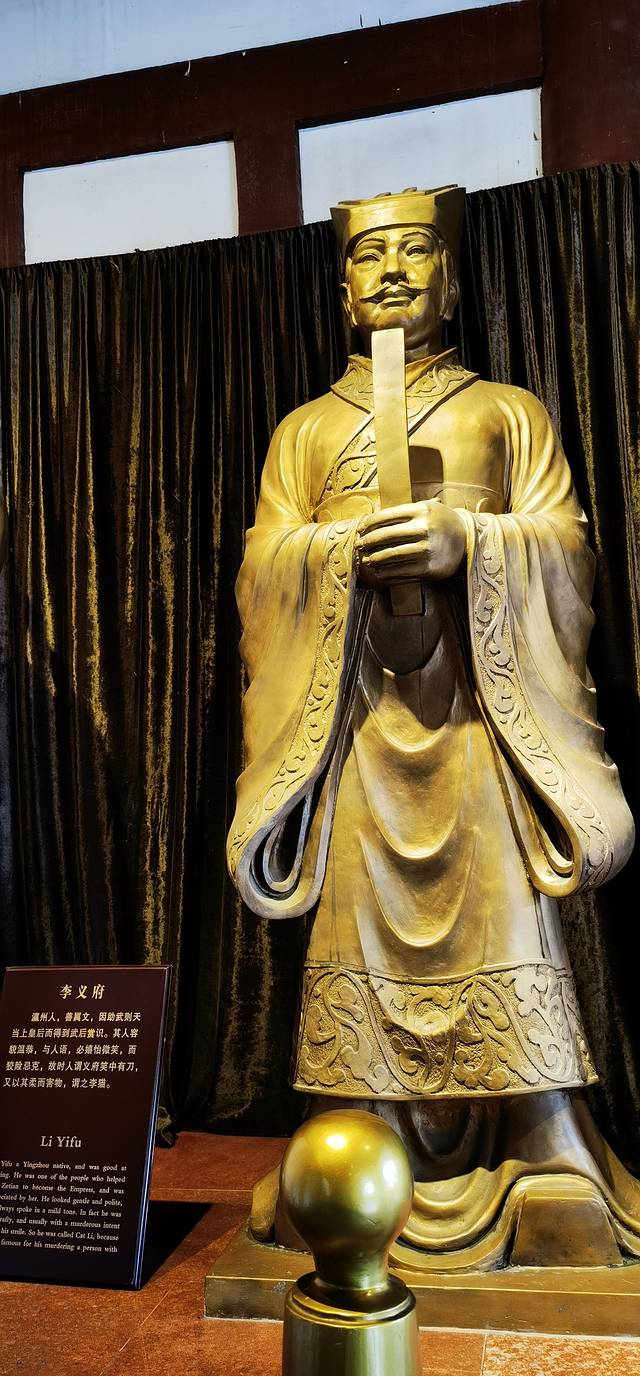 二圣殿内左右两侧,塑有高宗、武周朝时期的九位著名大臣,分别是李绩、李义府、魏元忠、李昭德、狄仁杰、娄师德、张柬之、来俊臣、上官婉儿。