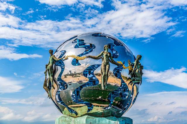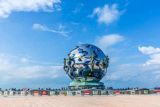 阳光照耀着的潮雕,在蓝天白云的映衬下显得格外的耀眼,这也是来到北海必打卡的目的地之一。