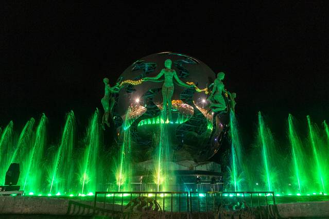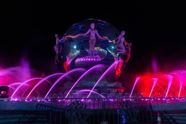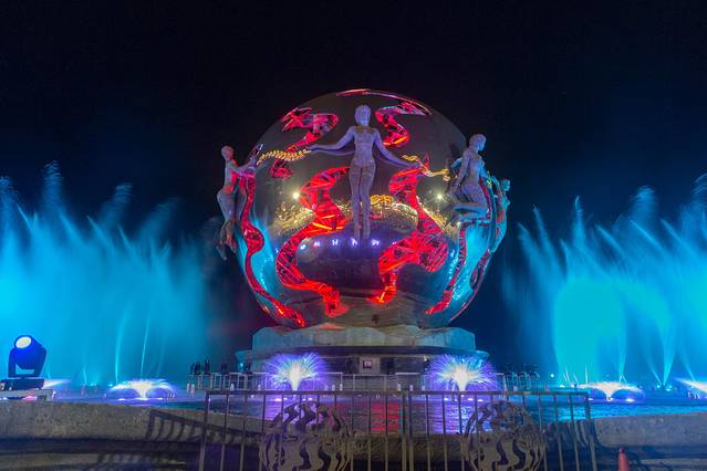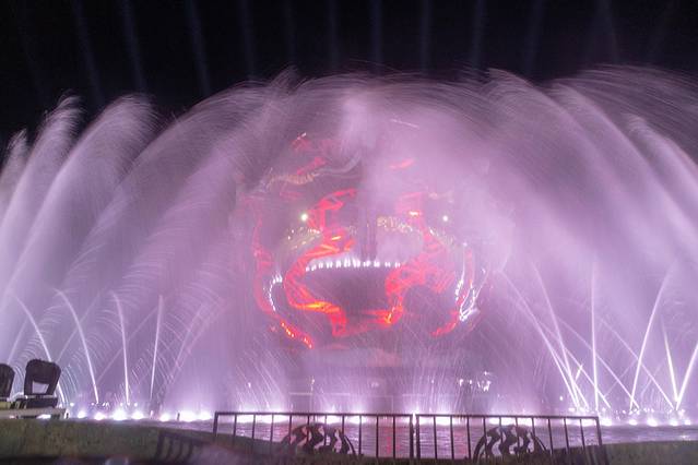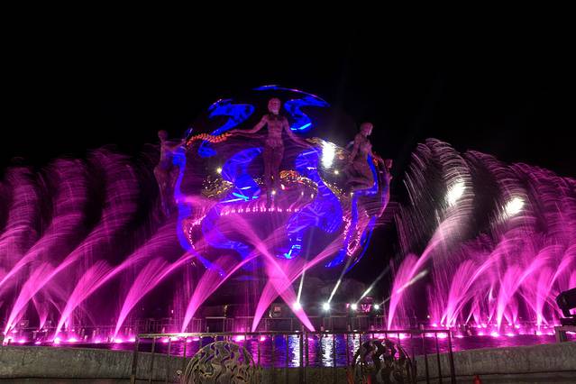 夜晚,在潮雕广场上又开启了另外一个视觉体验,那就是集合了“特殊影像、喷泉秀、喷火秀、灯光秀、激光秀、烟花秀、音乐”七大功能于一体的潮”雕灯光秀,打造震撼、时尚的室外高科技多媒体秀。30盏由缺到圆的月亮潮汐灯环绕在“潮”雕塑周边,与“潮”雕的“明珠”一起,星辉闪耀,珠联璧合,整个广场如同装满珍珠的玉盘在海边铺陈开来。