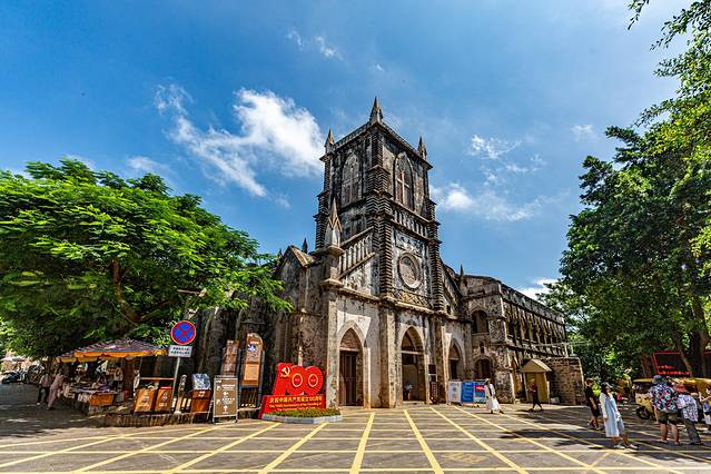 建筑主体材料选用当地特有的珊瑚岩石,历经100多年的风雨侵蚀依旧保存完好,每天前来参观的游客络绎不绝,许多人都说来到涠洲岛的第一站一定会选择这里,若是没有来过这里便不算真的来过涠洲岛。