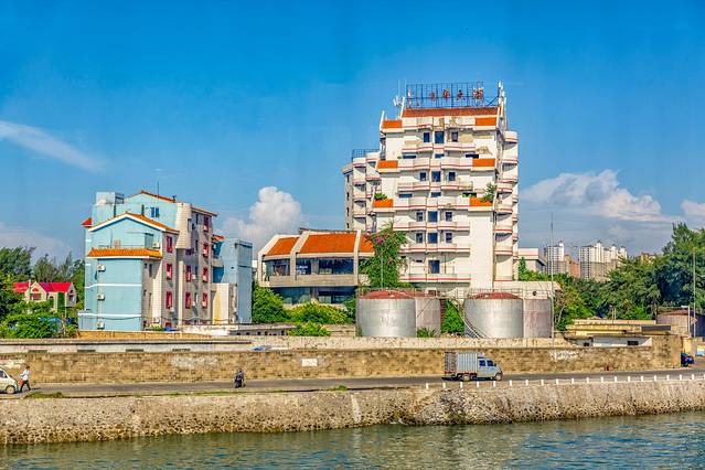 白天的侨港热热闹闹,进入风情街就会感受到这里的人间烟火,没有大城市的车水马龙只有小镇上的人来人往,这里大多数交通工具都是电瓶车或者摩托车。街道上最热闹的地方还是那些美食店铺,最吸引人的越南风味越南春卷、越南小粉和炎热天气必备的冰沙,还有当地特有的小海鲜,价格都很便宜也会实惠。