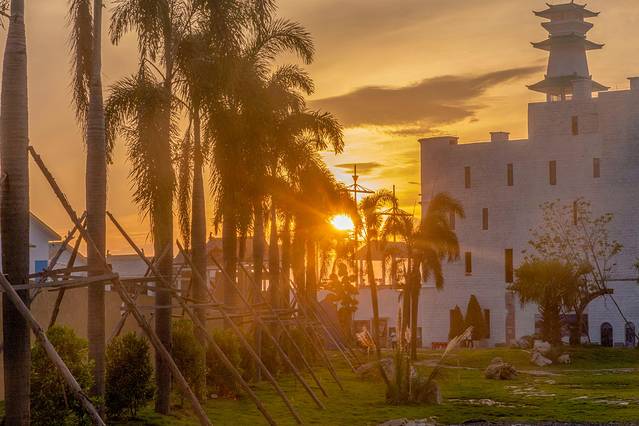 夕阳渐渐地透着微弱的光芒照射下来,丝路古港又变成了另外的一种景象,好似诗句里说的那样,让人感受到海上明月共潮生的完美意境。