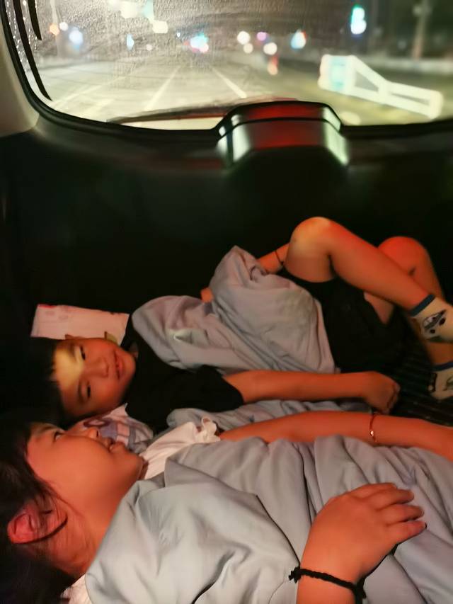 早上3.40出门,为了避开堵车,辛苦老公了,两孩子第一次睡车后面,很兴奋~