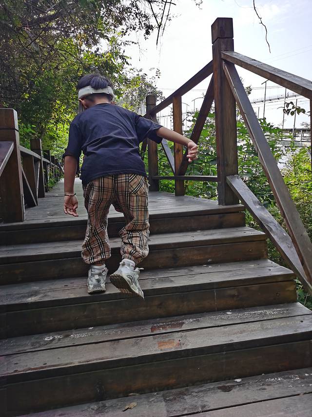 小子不敢走,走台阶去了~