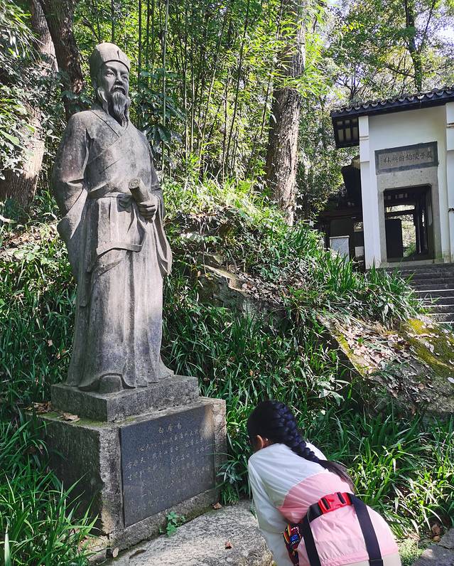 有很多诗人的雕像,孩子们一个个看过去