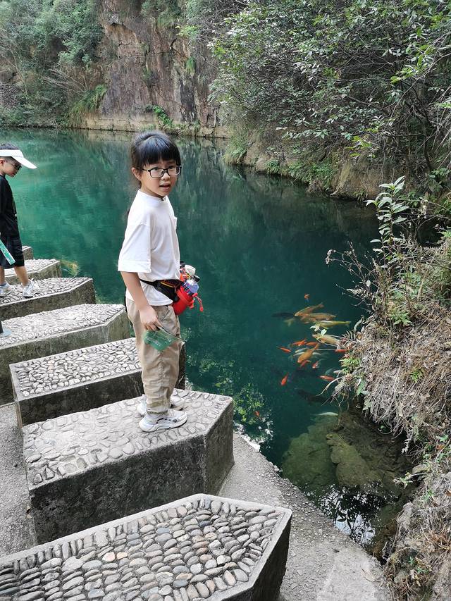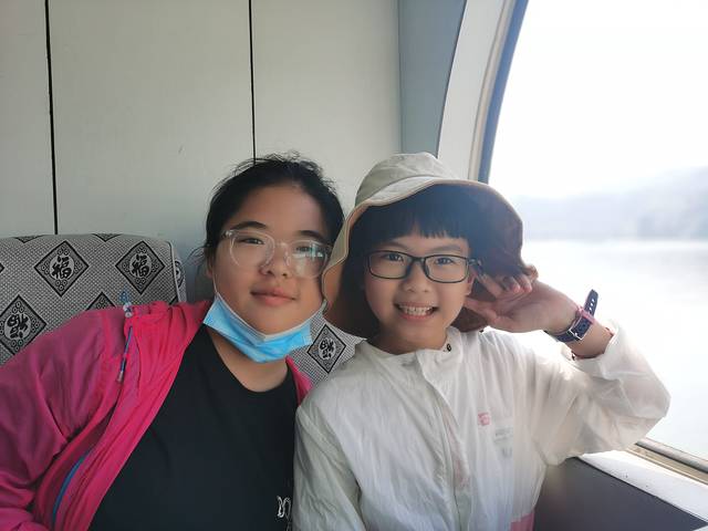 携程网上买的票,含船票112一张,高一的也可以买儿童票,检票时给他们看学生证就行,两个小的儿童票62元一张,坐船进去,到了后说是一个小时后出来坐回这艘船去下一个点。所以我们加上爬山有点赶,其实没必要这么赶,可以坐下一班船的,这个后来才知道~