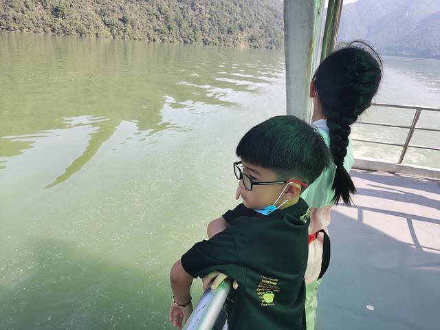 坐在船的第二层,甲板上可以吹风,拍照