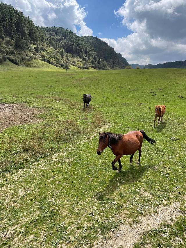 这里的牛羊马是散放的,可以近距离看,但是不能喂,假装到了大草原呢!
