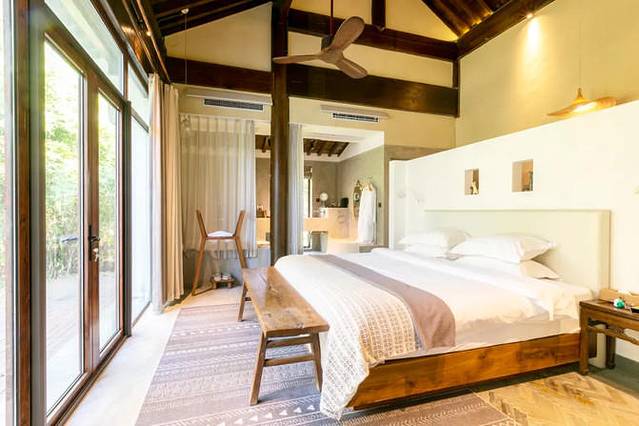 三个房间典雅精致,各有风情,落地玻璃窗视野超赞,设有独立的茶吧空间,亲子房里还有可爱的亲子玩具。