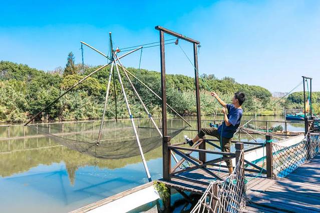 沙四龙渔乐园里渔趣丛生,亲自体验一下江南水乡古老的捕鱼方式——扳罾,健康的食材往往采用最质朴的捕捞方式。扳罾不仅讲究技巧还需要力量,女孩子可以闲坐河畔钓一钓大闸蟹。