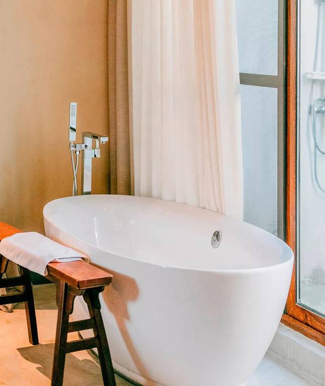 房内卫浴设施非常现代化,智能马桶、园景浴缸、室外淋浴等现代化的设施度假无忧。
