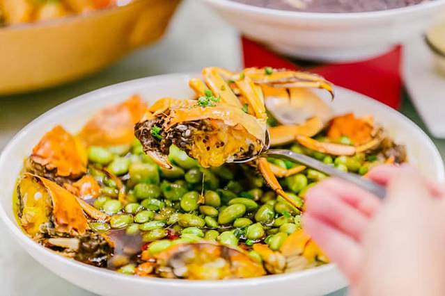 到芦逸酒店餐厅换种方式,重新打开一次阳澄湖大闸蟹,遇见毛豆仔炖蟹。杂鱼、土鸡、白丝鱼、桂花鸭血糯、熬味拼都是沙家浜独特的美食,清爽的芦根茶沁人心脾,让人回味无穷。