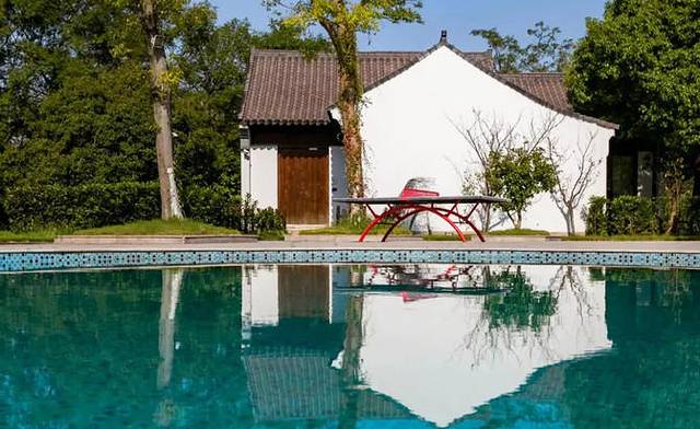 东屋那院是一座独栋小院,典型的粉墙黛瓦的江南民居,有前后两个小院,室外设有户外泳池、亲子沙坑、乒乓球桌。