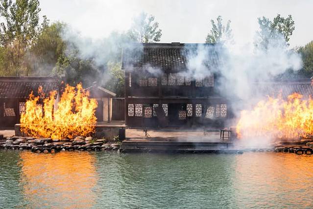 演出融入了丰富的声光电特效、汽艇特技表演、精彩的杂技、武术表演,轰鸣的炮枪声让人在身临其境,感受革命年代的战斗氛围,以及沙家浜人不屈不挠的战斗精神。