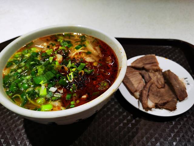 中午饭,兰州牛肉面。面条8元,一两牛肉10元