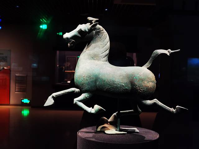 东汉的铜奔马。马踏飞燕,全身的着力点集注在一只飞鹰的足上