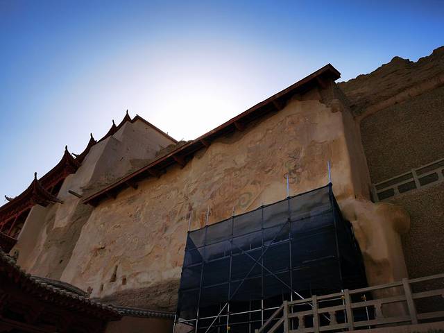 我们参观了325、329、17、257、259、244、237、96共8个窟,这是正在维修洞外的壁画