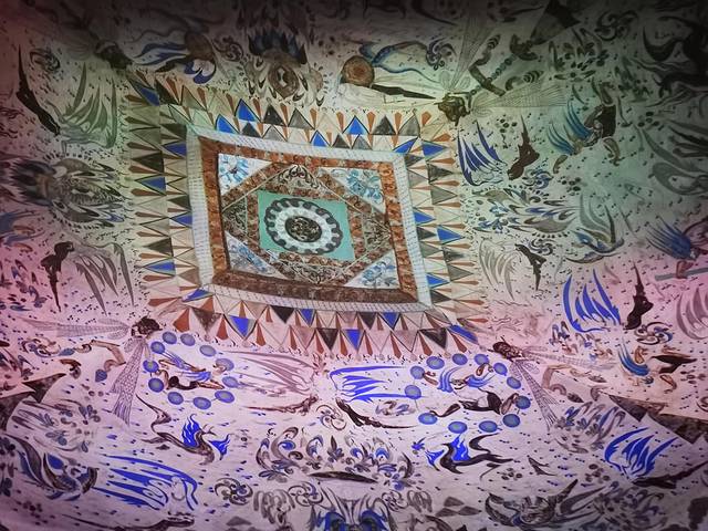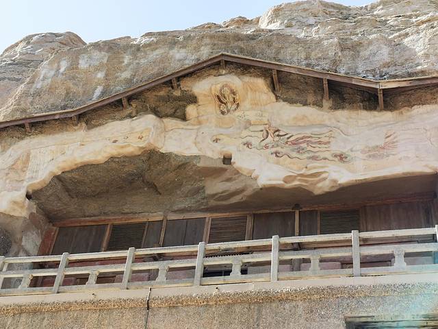 莫高窟各窟均是洞窟建筑、彩塑、绘画三位一体的综合性艺术。这是在洞外的一点壁画
