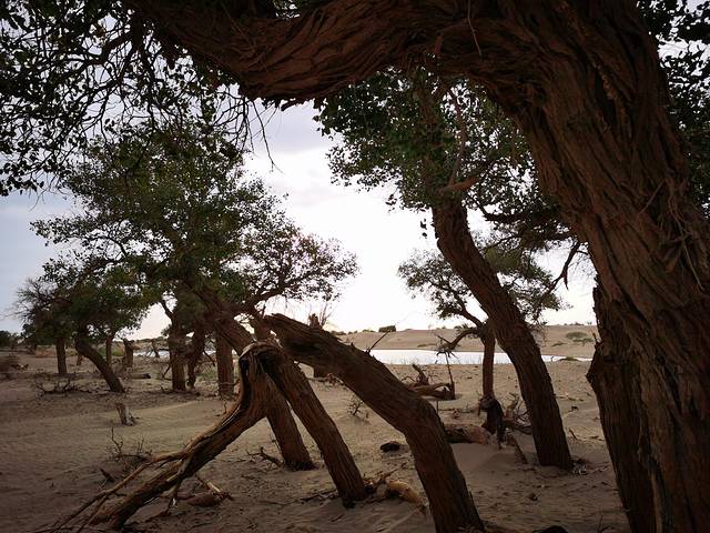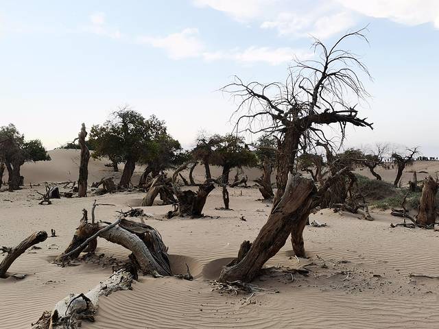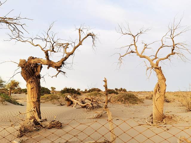 胡杨具有耐腐特性,即便枯死千年后,树干依然能伫立在戈壁荒漠上,形态怪异悲凉