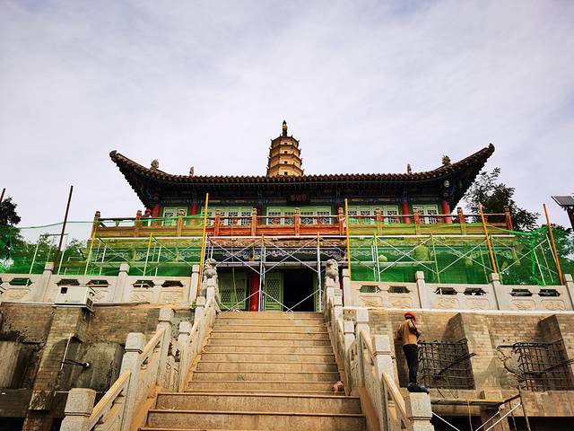 爬到最高处,找了半天白塔在哪?原来正在维修