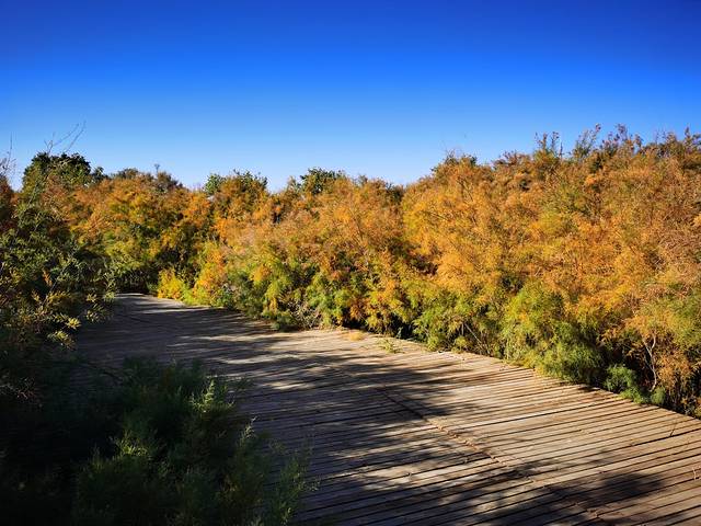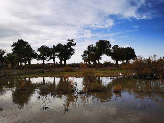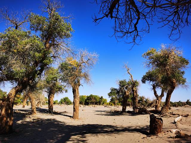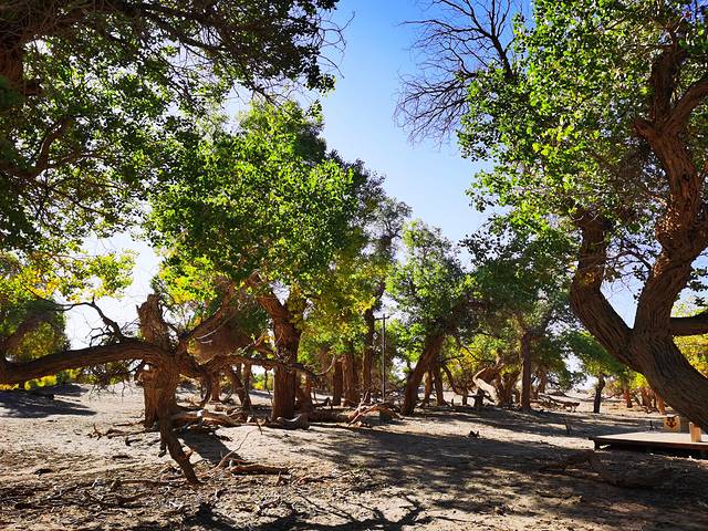 从二道桥坐摆渡车到四道桥。四道桥的胡杨林我们去的时候也没有黄,而且要走很远的路才能再坐上摆渡车去七道桥,大家觉得这里不好看