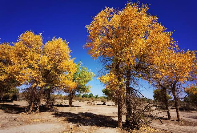 那边的天气一直高温,所以胡杨林没有特黄,好在有七道桥给了一下面子,算是看到了一些。据当地人说正常情况下胡杨林就是一部分一部分的黄,不是瞬间全黄的。