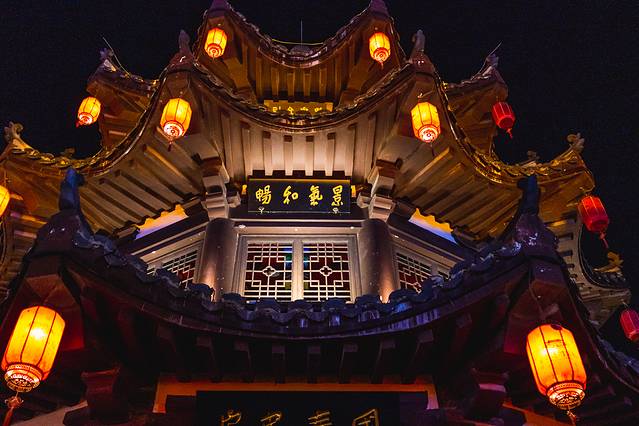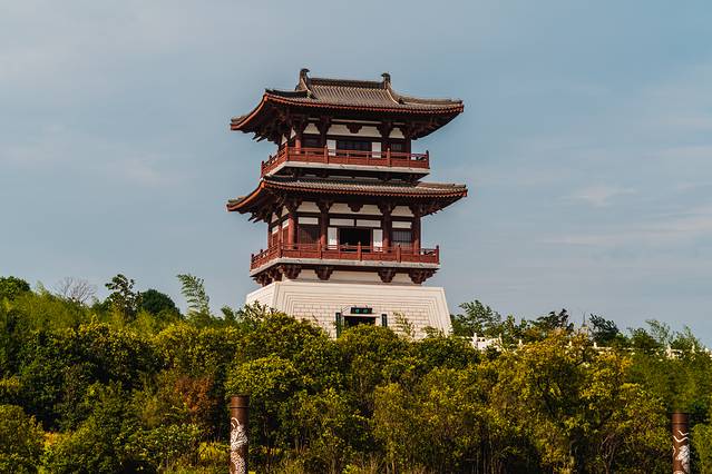 “隋唐运河古镇”位于淮北市相山区南黎路与长山路交口东南侧,由五凤三阁景区、水镜戏台、漕仓堰闸景区、茶道石舫、闸口盘车景区、运河天地等部分组成,虽然不是原汁原味、历史悠久的古迹,但却凭借着源远流长的运河文化,已然成为了淮北市人气鼎盛的好去处。