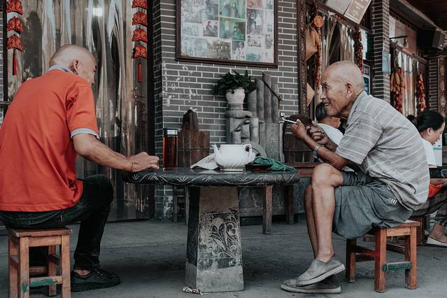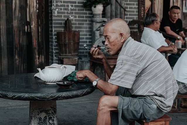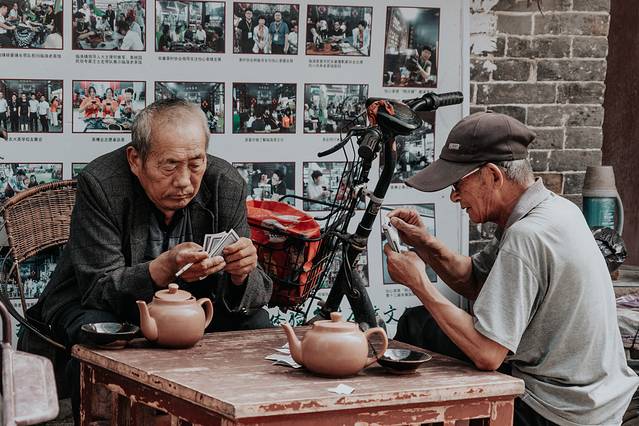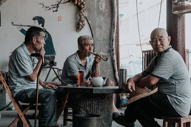 人们汇聚于此,点一壶棒棒茶,棒棒茶不贵,一元起步,却可以无限续杯,在茶楼里一坐就是一整天。熟识的人三三两两围坐,聊天、打牌、听曲、敲打着旱烟袋……