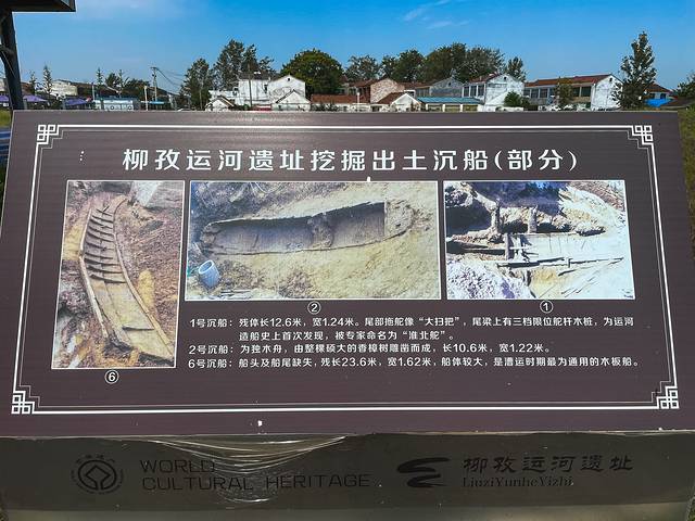 运河遗韵厅内有一块刻有“柳江口”的石碑,还有一幅巨大的“开凿运河图”,再现了隋唐大运河的开凿场景。同时大厅内还展示了柳孜遗址复原,现场展示了一艘唐代货船,遗憾的是,这艘货船出土时只有部分船身,船头已经缺损了。