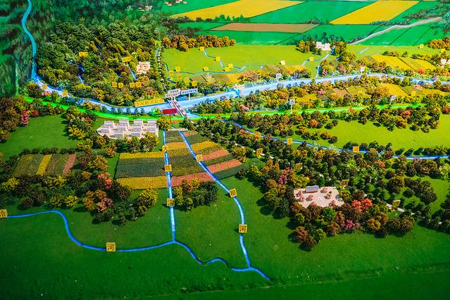 文化园设计规划分为钟馗宝塔及山体景观、环山水体景观、钟馗大殿展示区、道风苑景观、钟馗故居、钟馗文化展示区、钟馗百态雕塑园、综合旅游服务区(生态园)。