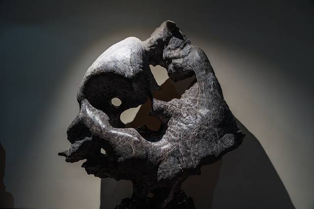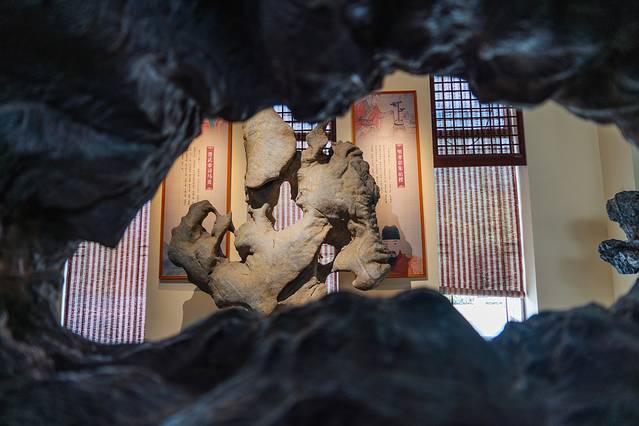 虞姬、奇石、钟馗画,灵璧三绝甲天下。灵璧石,安徽省灵璧县特产,质地细腻温润,滑如凝脂,石纹褶皱缠结、肌理缜密,石表起伏跌宕、沟壑交错,造型粗犷峥嵘、气韵苍古。常见的石表纹理有胡桃纹、蜜枣纹、鸡爪纹、蟠螭纹、龟甲纹、璇玑纹等多种,有些纹理交相异构、窦穴委婉,富有韵律感。