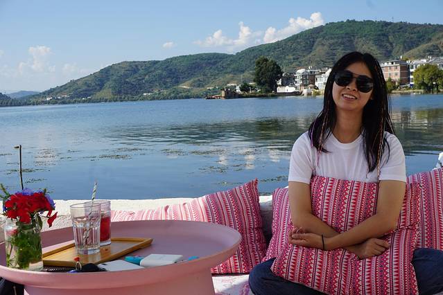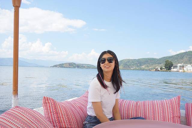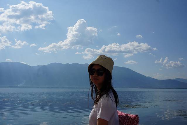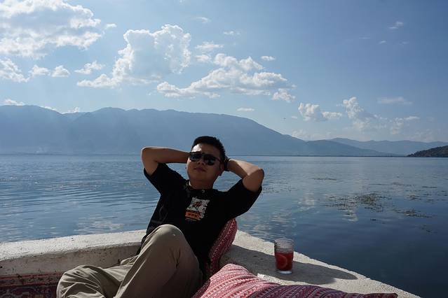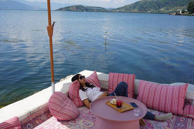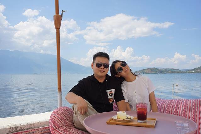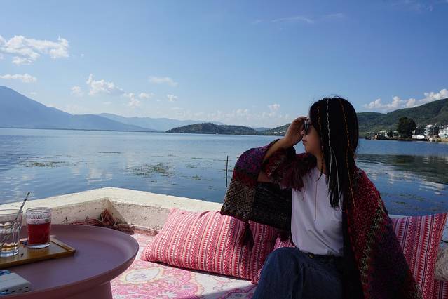 直接选择理想生活咖啡店,我们2点左右到了,没有人,开心,这个地方我们躺到了5点多,因此也导致了后面的堵车。伸手就能碰到洱海呢