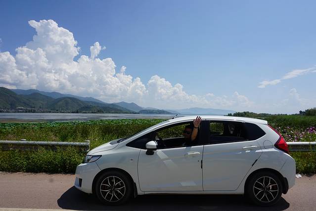 约了9点提车,想着比别人早半小时,就能少堵一天,早早到了租车行,结果我定的smart还没有来,小哥说没有倒车影像,胖子坚持换了飞度,说好开,安全。。