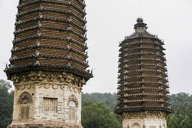 这7座佛塔气势恢宏、布局规整,令人震撼,其中5座大塔的是辽金时期所建,两座小塔是元朝时建造。