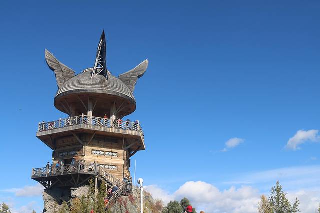 禾木村的房子全是原木搭成的,充满了原始的味道,禾木村最出名的就是万山红遍的醉人秋色,炊烟在秋色中冉冉升起,形成一条梦幻般的烟雾带,胜似仙境。在禾木村子周围的小山坡上可以俯视禾木村以及禾木河的全景:空谷幽灵、小桥流水、牧马人在从林间扬尘而过……
