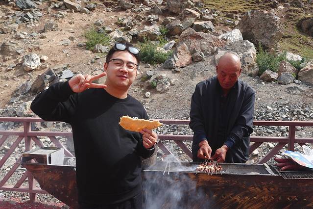 在杜库公路半途雪山脚下吃上一串当地牧民现宰的羊肉串是什么个体验,这应该是吃过最好吃的羊肉串没有之一