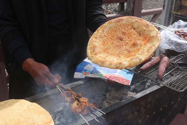 馕”,意为面包,馕外皮为金黄色,以面粉为主要原料,多为发酵的面,但不放碱而放少许盐。搭配上烧烤串那真是绝美搭配